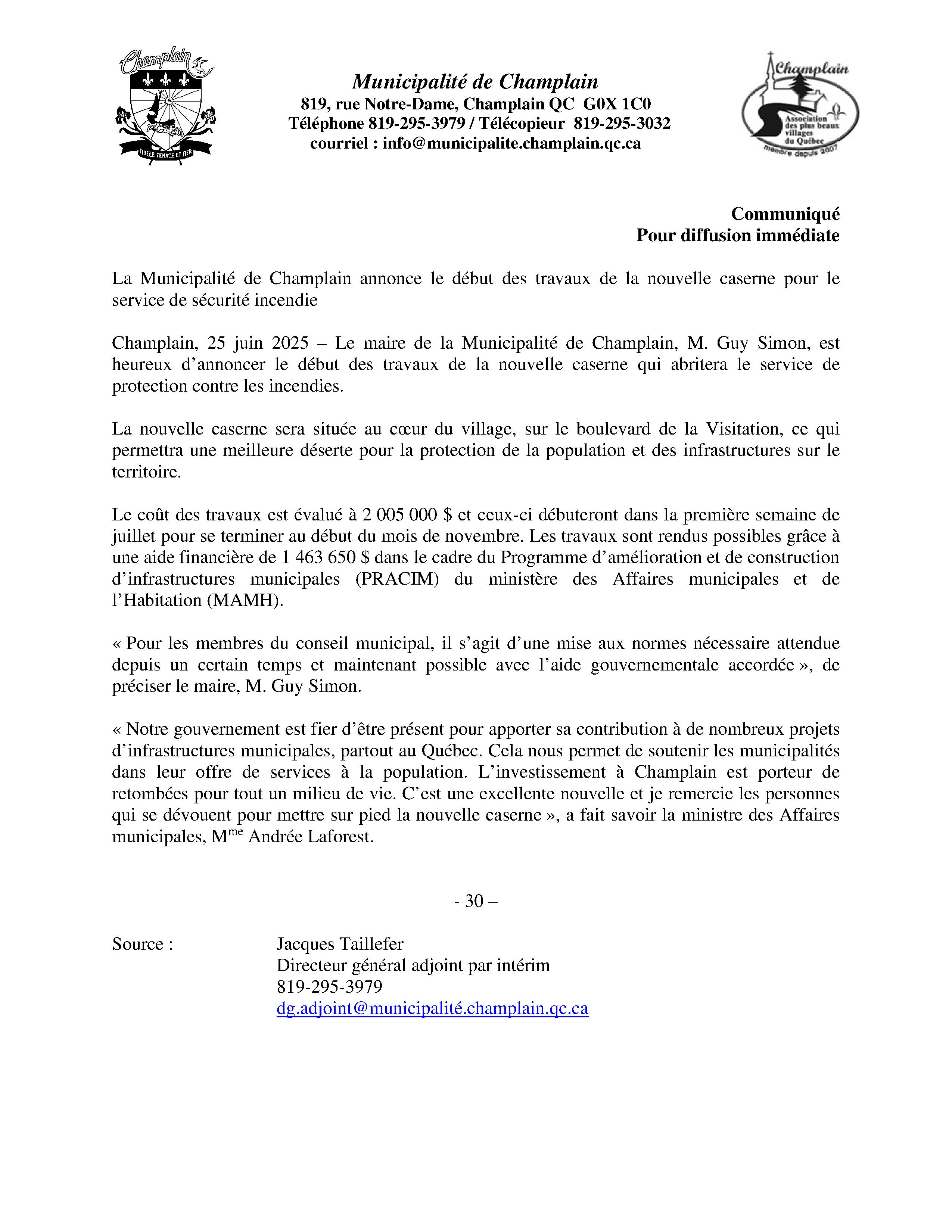 Communiqué complet en suivant le lien suivant :