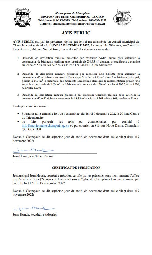 Dérogations mineures - Lots 6 174 144; 4 503 334; 4 503 446