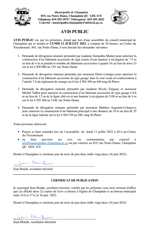 Dérogations mineures - Lots 4 506 080; 4 504 369; 4 503 366