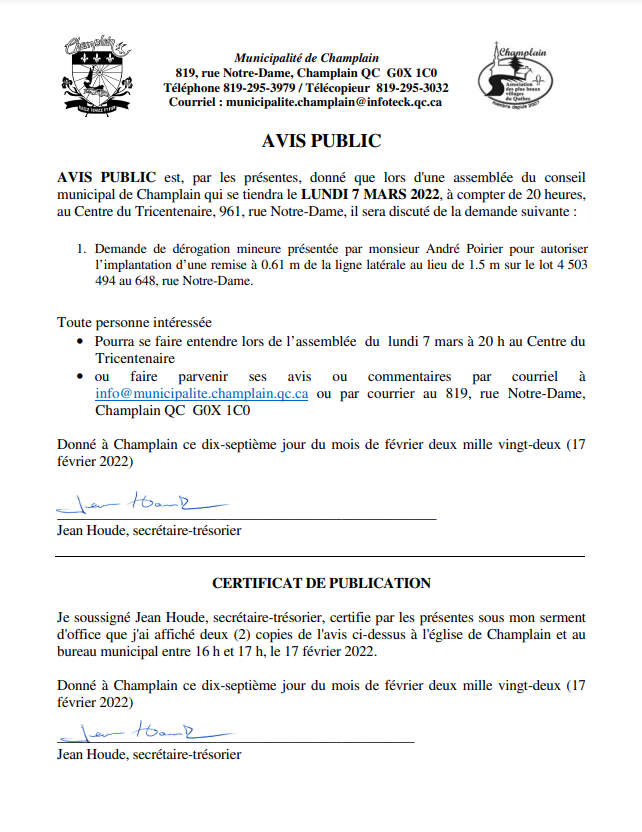 Dérogation mineure - Lot 4 503 494