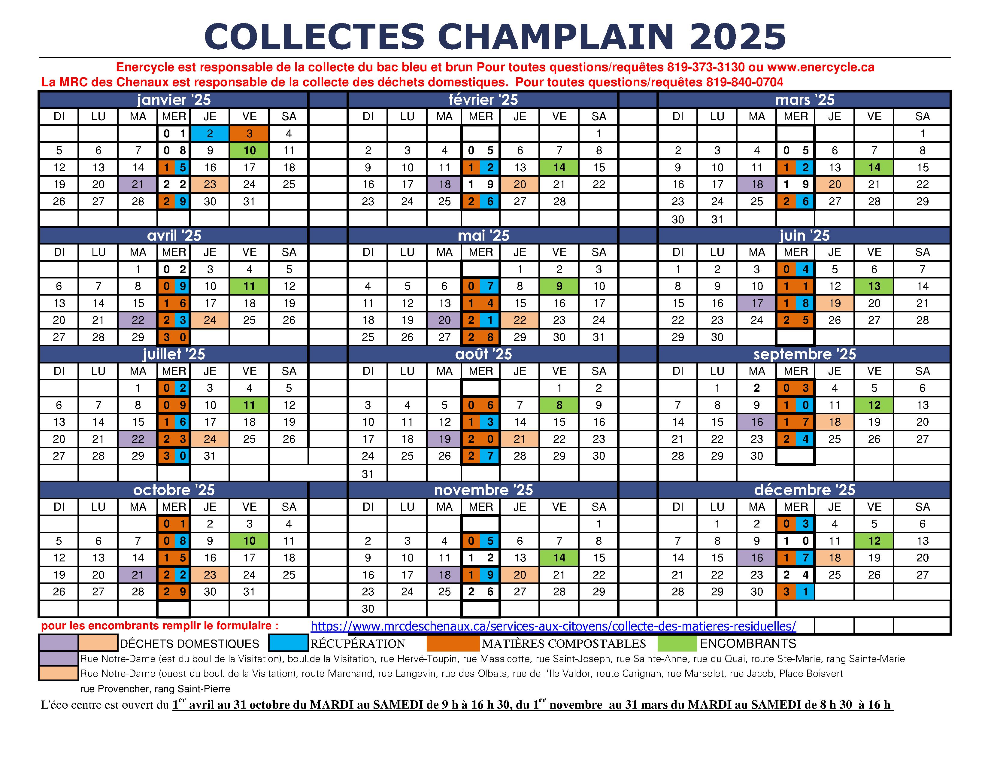 Les collectes se feront le 2e vendredi de chaque mois. Les formulaires devront être acheminés à l'équipe au minimum 48 heures avant la journée de la collecte afin de permettre une planification adéquate.